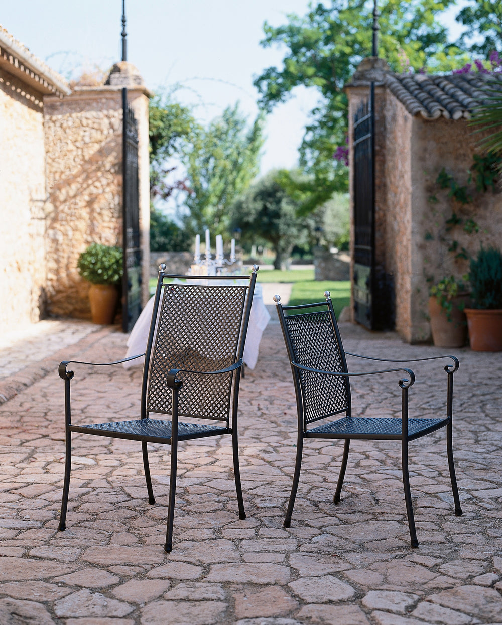 EXCELSIOR is stylishly in tune with the spirit of the times and yet has a nostalgic aura. The seat combination is made of solid iron, which has been crafted into expressive and gallant shapes, which are given a romantic finish by the free-standing spheres at the head of the backrests. The result is a range that skilfully combines historical flair and contemporary design aspects to create superior seating culture with luxurious comfort.